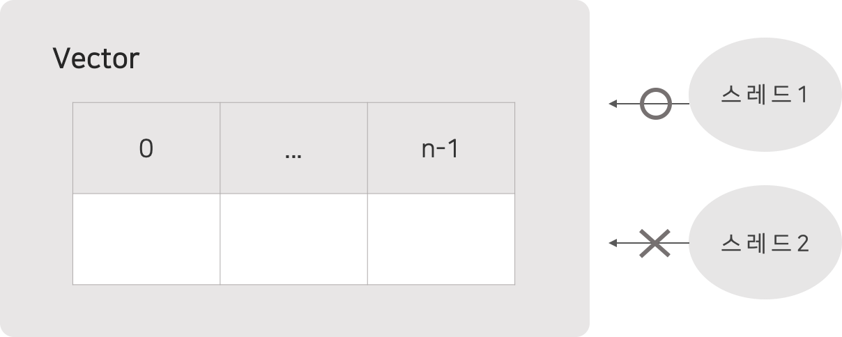 다른 점은 Vector는 동기화된(synchronized) 메소드로 구성되어 있기 때문에 멀티 스레드가 동시에 이 메소드들을 실행할 수 없고, 하나의 스레드가 실행을 완료해야만 다른 스레드를 실행할 수 있다.