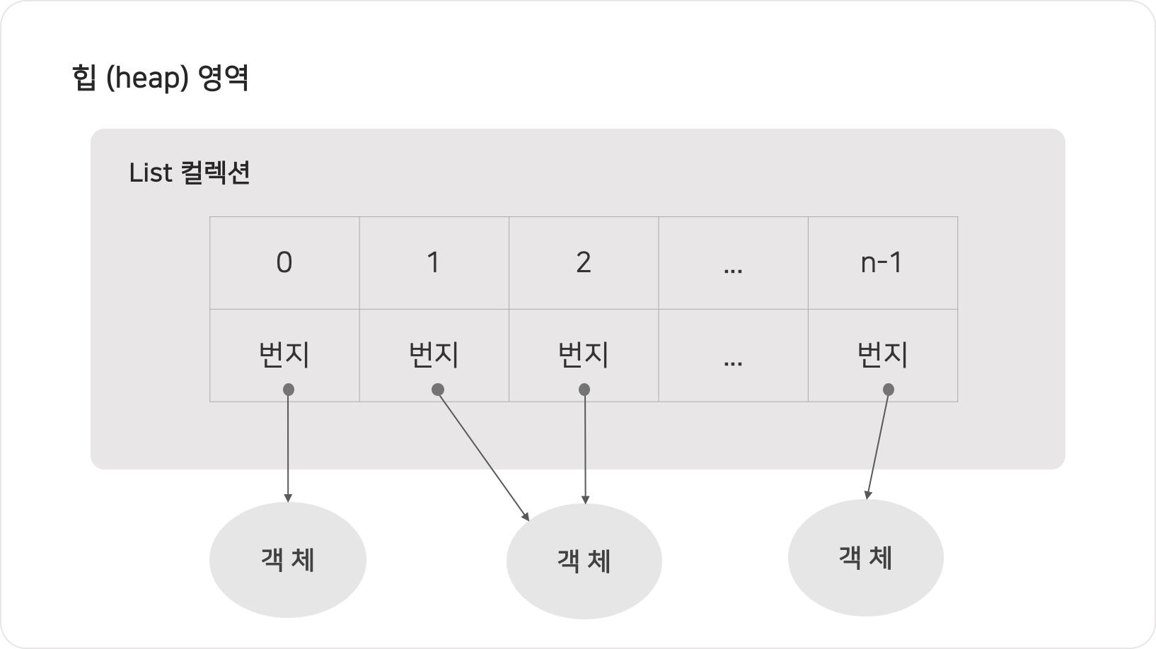 객체 자체를 저장하는 것이 아니라 객체의 번지를 참조한다.