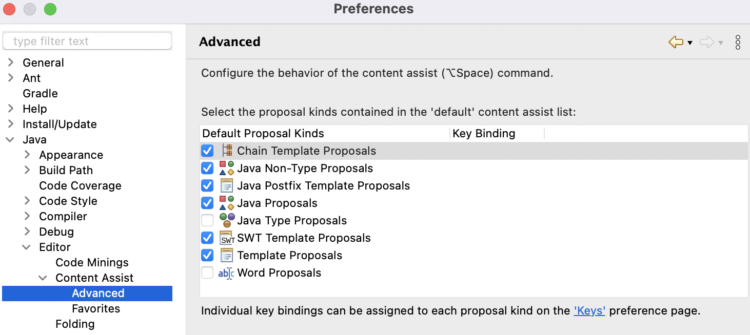 - Editor - Advanced : Java Non-Type Proposals, Java Proposals 체크