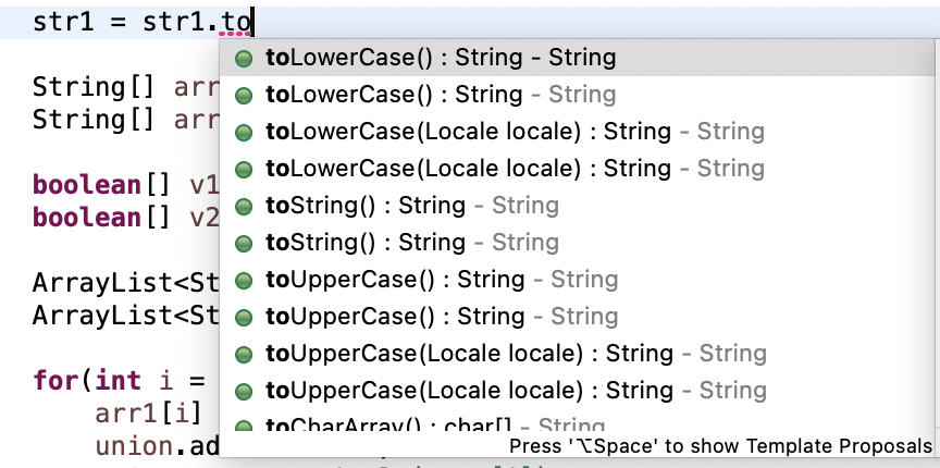 Mac에서는 Option + Space 단축키이고, 굳이 단축키를 누르지 않더라도 메서드들을 위와 같이 보여줍니다.