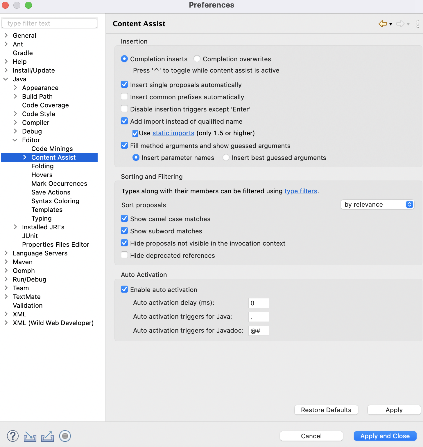 Mac - Eclipse : 메서드 자동 완성 기능이 안될 때 (Content Assistant) Option + Space