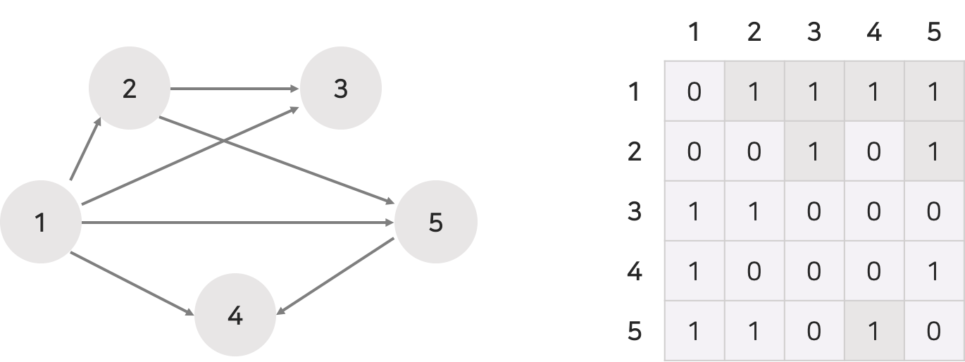 방향성을 가지는 그래프의 경우 아래와 같이 표현할 수 있다.