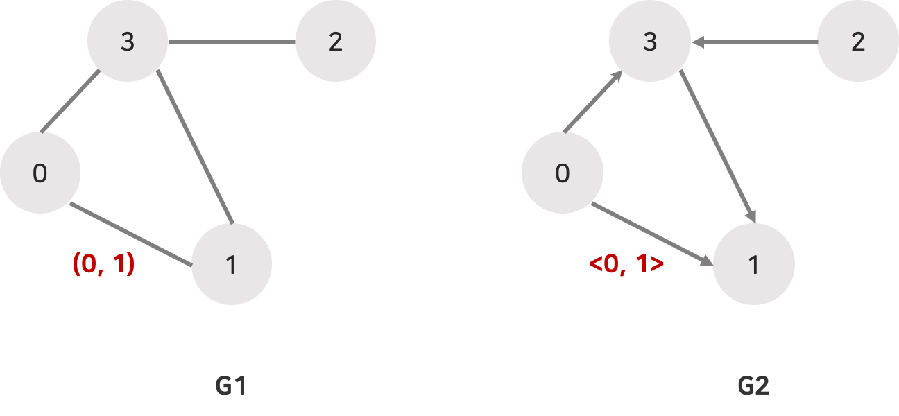 정점 A에서 정점 B로만 갈 수 있는 간선은 <A, B>로 표시한다. <A, B> ≠ <B, A>