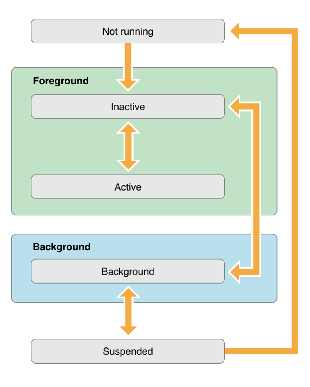- 앱이 background 상태일 때 실행(언제든 Suspend 상태가 될 수 있음)