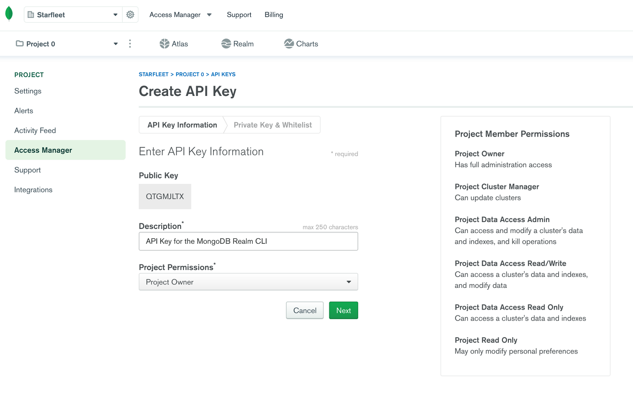 4. Atlas 프로젝트에 API 키 추가 및 Realm CLI에 로그인