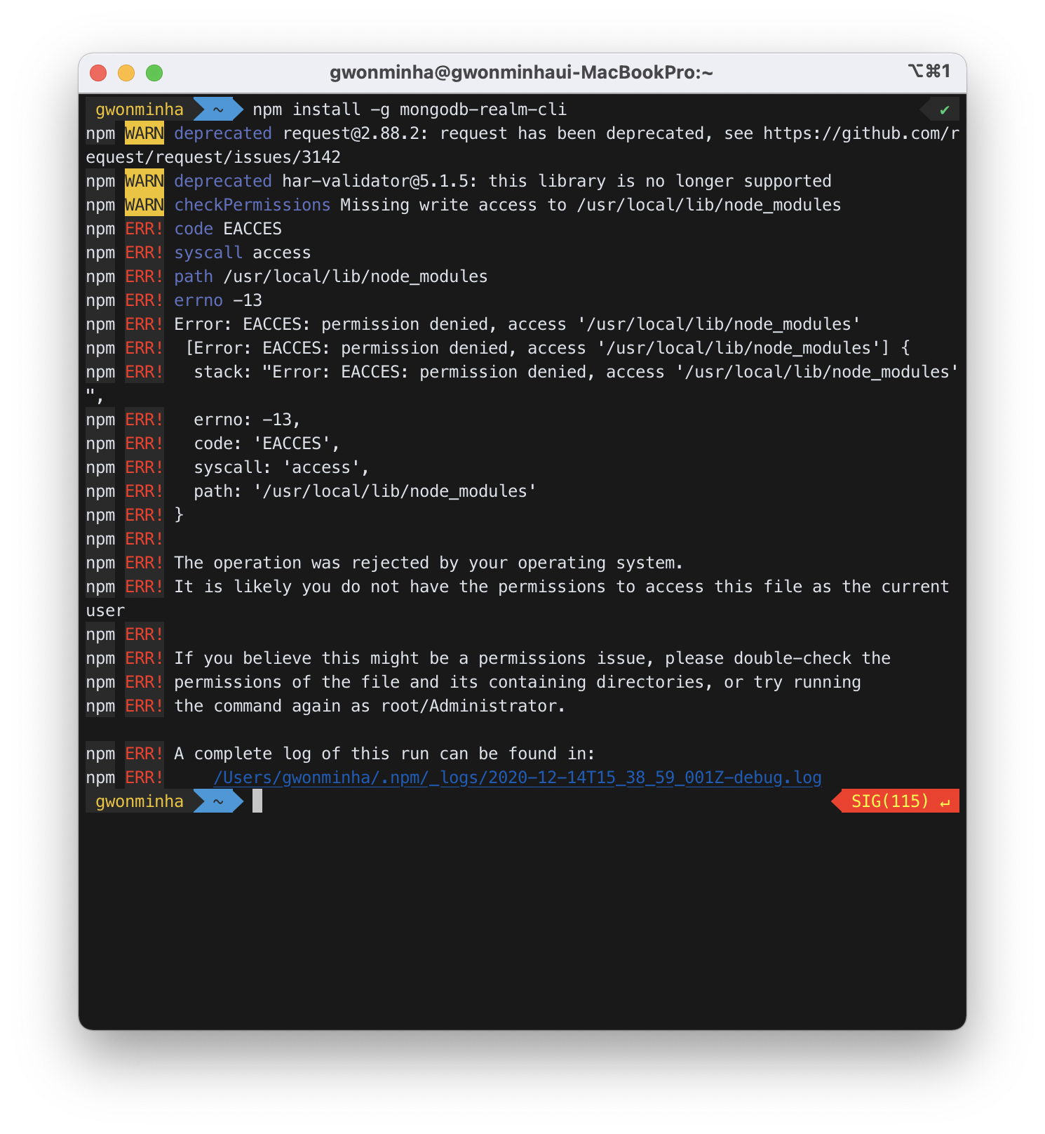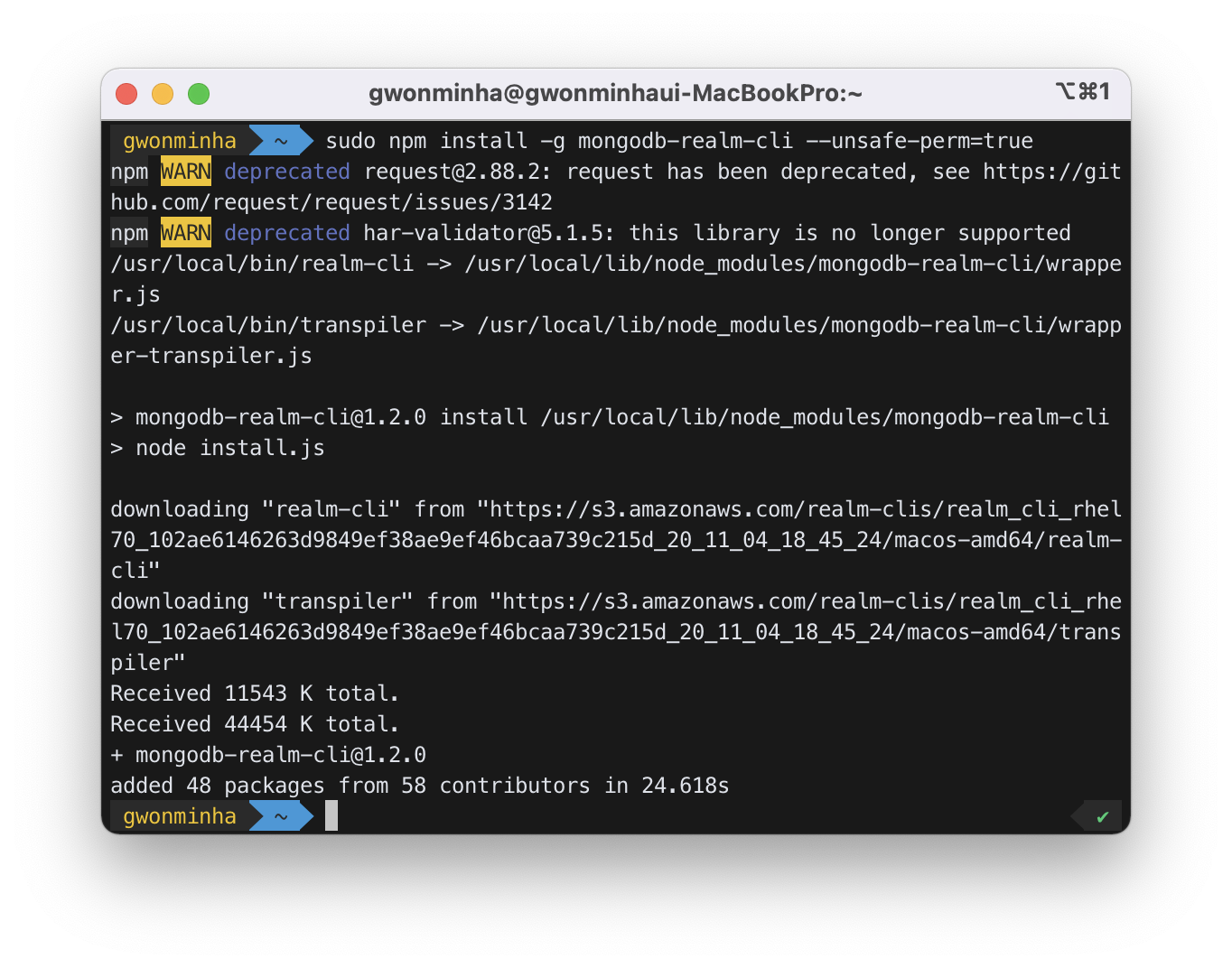 설치하는 가장 쉬운 방법 realm-cli은 npm 패키지 관리자를 사용하는 것입니다.
