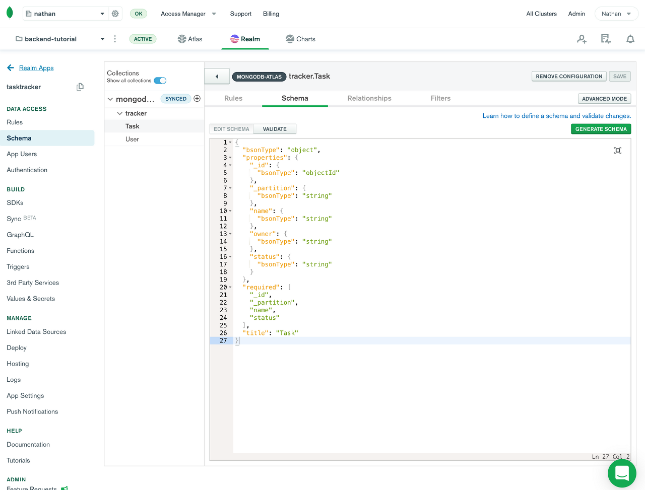* 팁 : MongoDB Realm의 스키마에 대한 자세한 내용은 Realm Schemas 문서를 참조하세요.