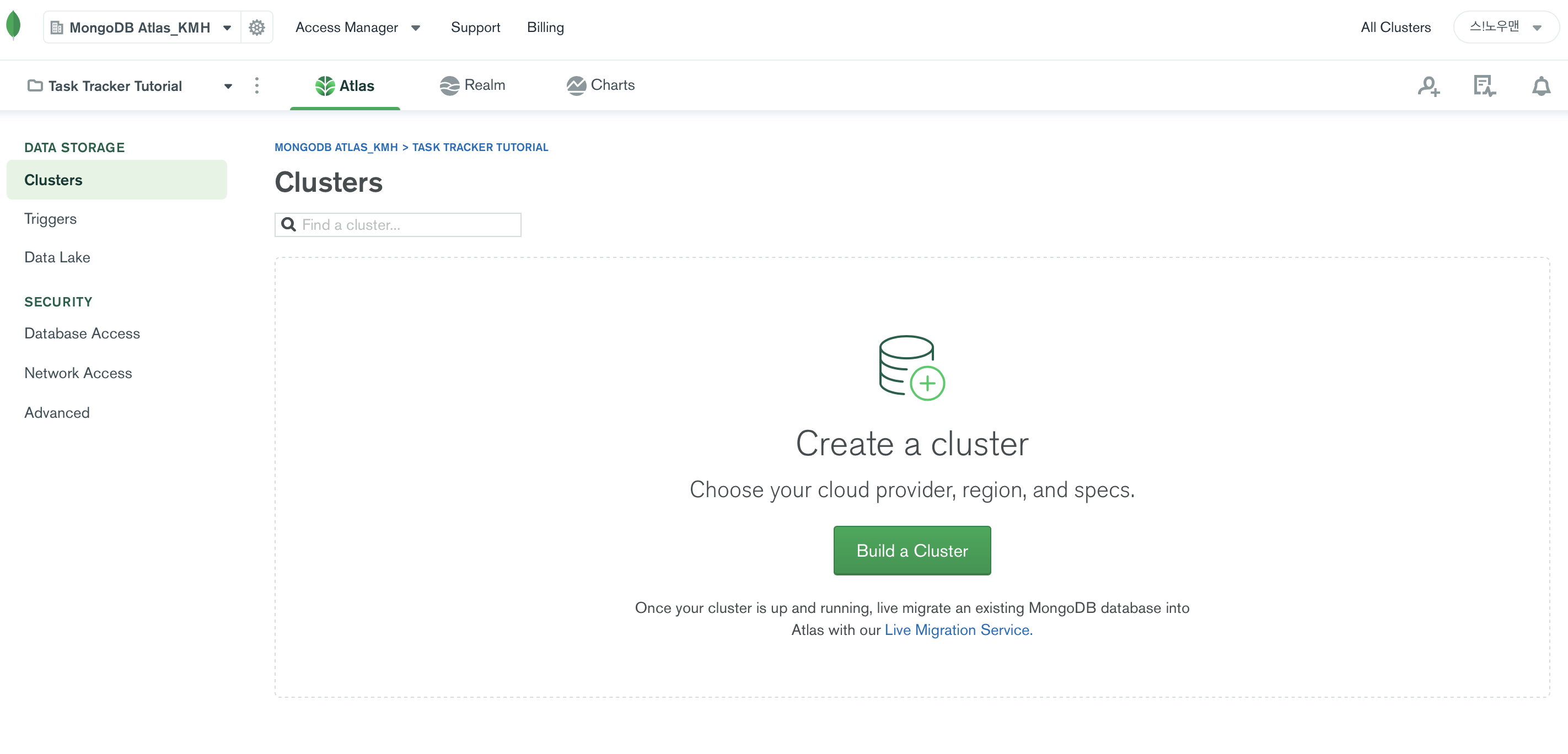 또는 Atlas 계정의 프로젝트 보기에서 Build a Cluster를 클릭할 수 있습니다.