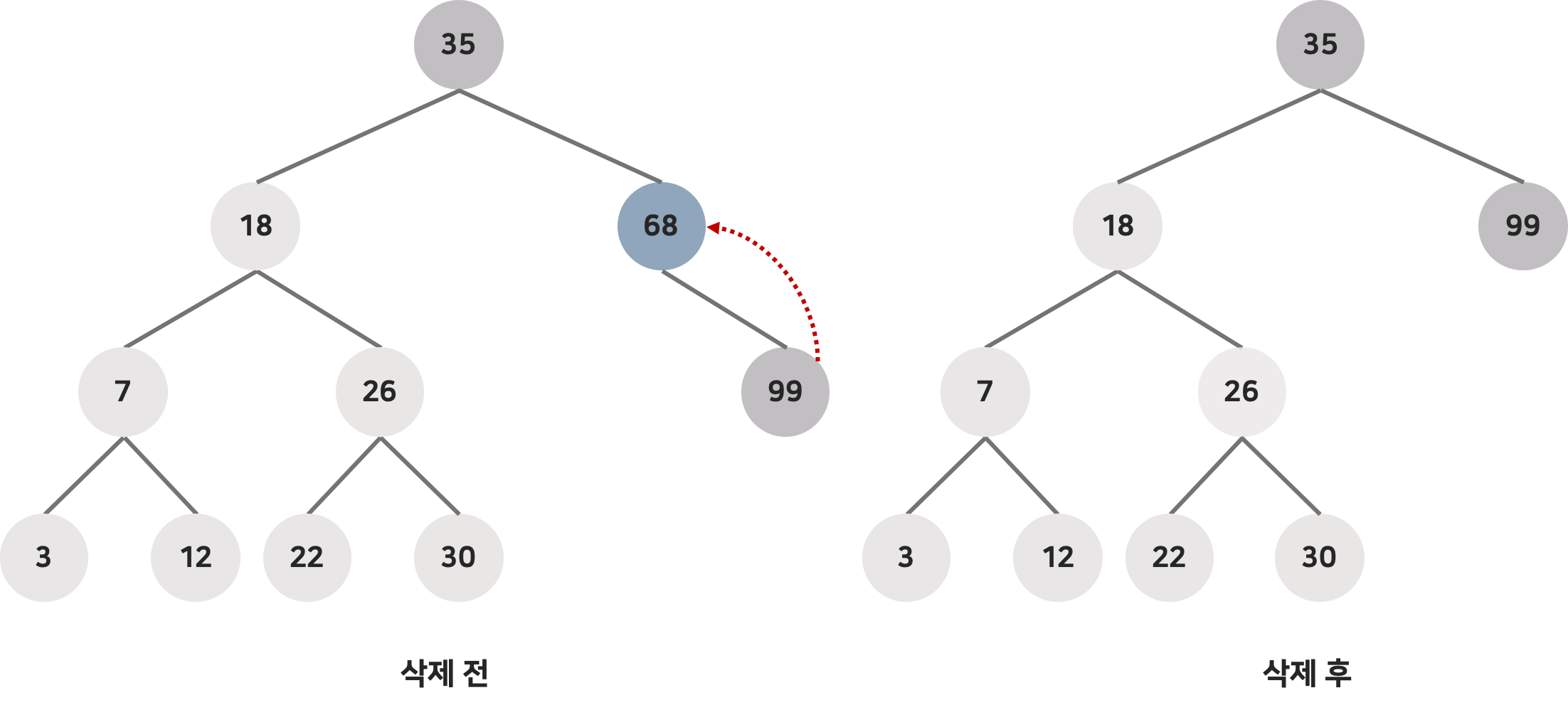 어떤 노드를 삭제 노드 위치로 가져올 것이냐가 중요하다.