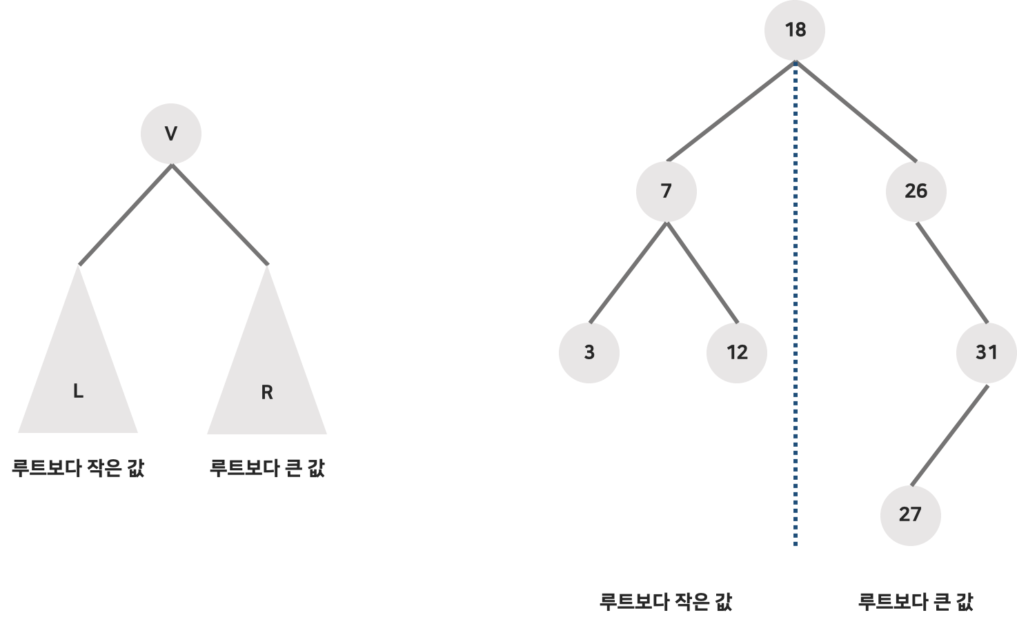 ex. 왼쪽 서브 트리의 값들 (3, 7, 12)는 루트 노드인 18보다 작다.